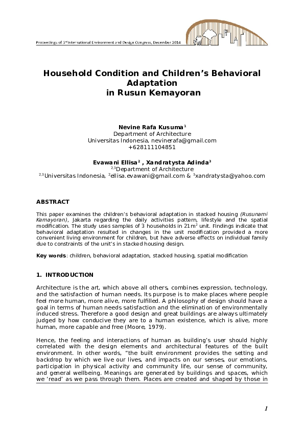 Doc Household Condition And Children S Behavioral Adaptation In Rusun Kemayoran Evawani Ellisa And Nevine Rafa Academia Edu
